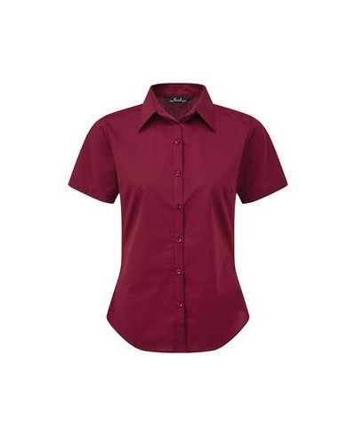 Eine Damen-Kurzarmbluse mit halb tailliertem Schnitt, erhältlich in 27 Farben. Die Bluse verfügt über einen weichen Kragenstil mit Abnähern an Brust und Rücken sowie einen abgerundeten Saum für ein wirklich attraktives Arbeitskleidungsstück.