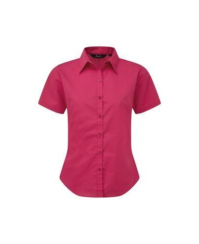 Eine Damen-Kurzarmbluse mit halb tailliertem Schnitt, erhältlich in 27 Farben. Die Bluse verfügt über einen weichen Kragenstil mit Abnähern an Brust und Rücken sowie einen abgerundeten Saum für ein wirklich attraktives Arbeitskleidungsstück.