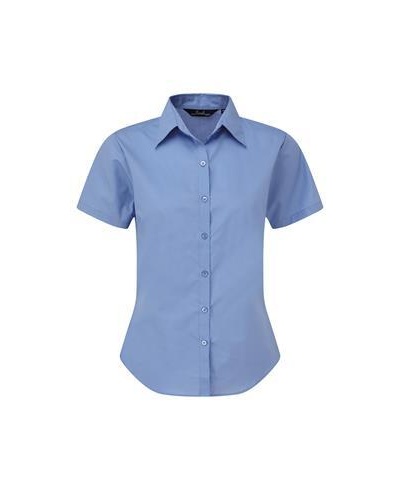 Eine Damen-Kurzarmbluse mit halb tailliertem Schnitt, erhältlich in 27 Farben. Die Bluse verfügt über einen weichen Kragenstil mit Abnähern an Brust und Rücken sowie einen abgerundeten Saum für ein wirklich attraktives Arbeitskleidungsstück.