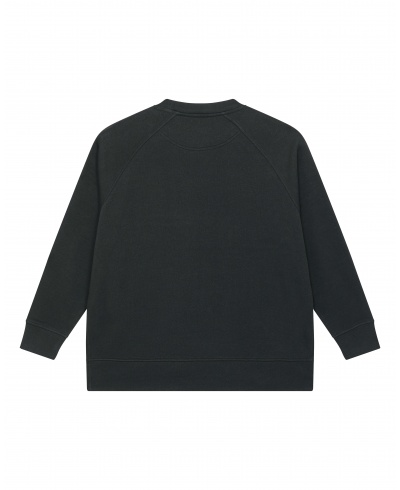 Material: 85 % ringgesponnene gekämmte Bio-Baumwolle, 15 % recycelter Polyester; Übergroße Raglanärmel, 1x1-Rippstrick an Halskragen und Ärmelsaum, gleicher Stoff am unteren Saum, innenliegendes Nackenband mit Fischgrätenmuster, Schlitz an den Seitennähten mit einfachem Fischgrätenbesatz, gleicher Halbmond am Nacken, Einzelnadel-Steppnähte an allen Nähten, Rückenlänge ist länger als Vorderlänge; Zertifikate: GOTS - Global organic textile standard, Fair wear, STANDARD 100 by OEKO-TEX®, Peta - Approved VEGAN