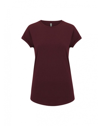 Damen-Recycling-T-Shirt Salvage mit Aufgerolltes Ärmeln