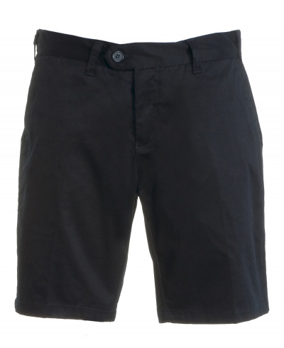 Damen-Bermudas, klassischer Schnitt, Hosenschlitz mit Reißverschluss und Knopf, Bund mit Gürtelschlaufen, mit zwei französischen Vordertaschen und zwei Gesäß-Leistentaschen mit Knopf