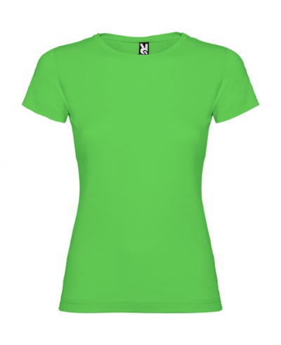 Tailliertes Damen T-Shirt. 1x1 gerippter Rundhalskragen, doppellagig. Nackenband, Seitennähte.