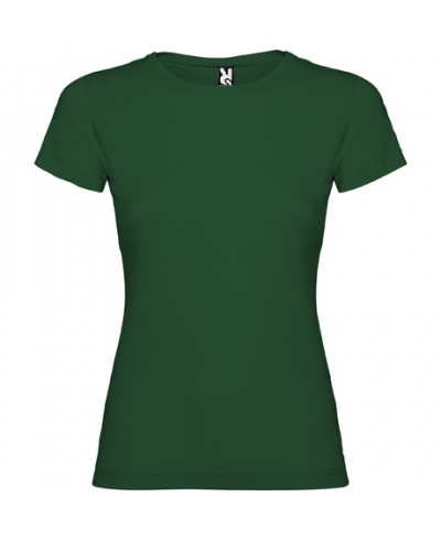 Tailliertes Damen T-Shirt. 1x1 gerippter Rundhalskragen, doppellagig. Nackenband, Seitennähte.