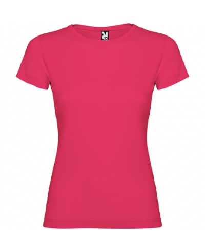 Tailliertes Damen T-Shirt. 1x1 gerippter Rundhalskragen, doppellagig. Nackenband, Seitennähte.
