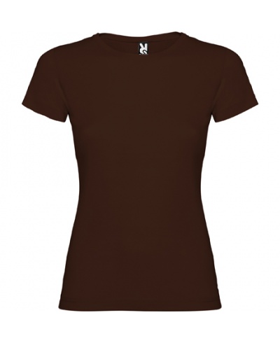 Tailliertes Damen T-Shirt. 1x1 gerippter Rundhalskragen, doppellagig. Nackenband, Seitennähte.