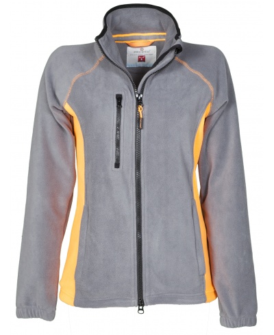Zweifarbige taillierte Damen-Fleecejacke mit durchgehendem, schwarzem 8 mm Reißverschluss