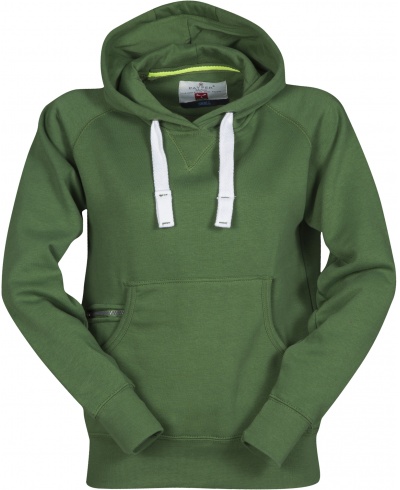 Tailliertes Damen-Sweatshirt mit Kapuze mit zwei Nähten und weißem Kordelzug, Nähten Ton-in-Ton und Metallösen, Raglanärmeln, V-Ziernaht am Ausschnitt, Kängurutaschen, Reißverschlusstäschchen,