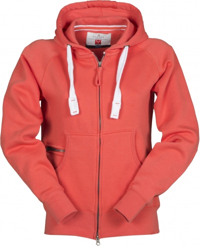 Taillierte Damen-Sweatjacke mit durchgehendem, verdecktem 2-Wege-SBS-Reißverschluss aus Kunststoff mit Metallschieber, Kapuze mit zwei Nähten und weißem Kordelzug, Nähten Ton-in-Ton und Metallösen, Raglanärmeln, Kängurutaschen mit Reißverschlusstäschchen, elastischem Feinripp an Ärmeln und Taille, verstärkten Nähten