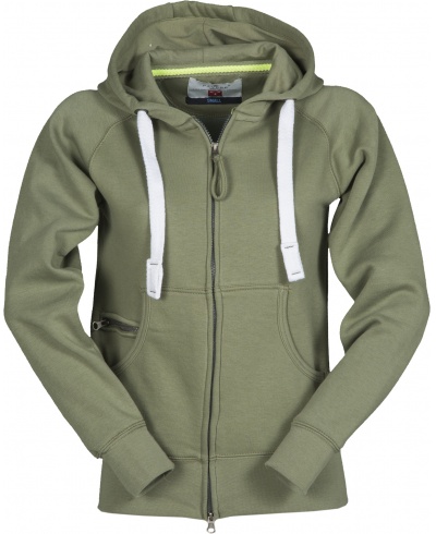 Taillierte Damen-Sweatjacke mit durchgehendem, verdecktem 2-Wege-SBS-Reißverschluss aus Kunststoff mit Metallschieber, Kapuze mit zwei Nähten und weißem Kordelzug, Nähten Ton-in-Ton und Metallösen, Raglanärmeln, Kängurutaschen mit Reißverschlusstäschchen, elastischem Feinripp an Ärmeln und Taille, verstärkten Nähten