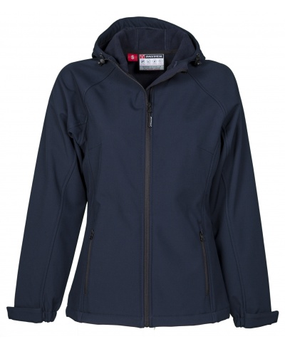 Taillierte Damen-Jacke mit Raglanärmeln, vorgeformter Kapuze mit zwei Nähten und Kordelzug, durchgehendem versiegeltem Reißverschluss, elastischen Ärmelbündchen, zwei Außentaschen mit Reißverschluss