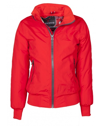 Taillierte Damen-Jacke mit verdecktem Reißverschluss aus Kunststoff mit Metallschieber, Rippstrickbündchen an Ärmeln und Taille, zwei Außentaschen mit verdecktem Reißverschluss;