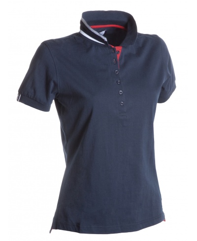 Tailliertes Damen-Polo-Shirt kurzärmelig, mit 6 Knöpfen Ton-in-Ton und Perlmutteffekt, Oberseite des