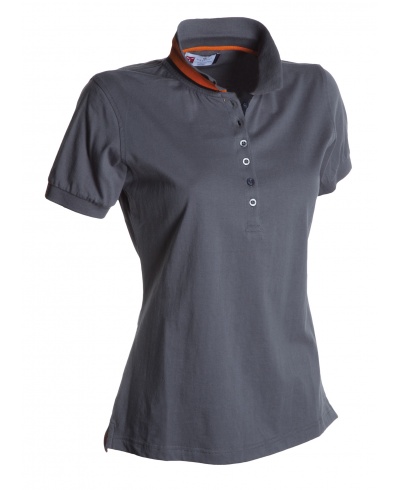 Tailliertes Damen-Polo-Shirt kurzärmelig, mit 6 Knöpfen Ton-in-Ton und Perlmutteffekt, Oberseite des