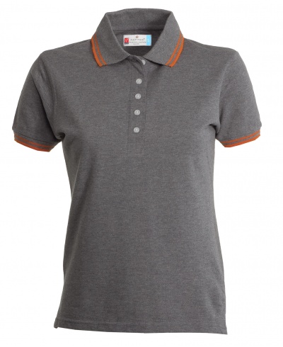 Tailliertes Damen-Polo-Shirt, kurzärmelig, mit 5 weißen Knöpfen, Kragen und Ärmelrand