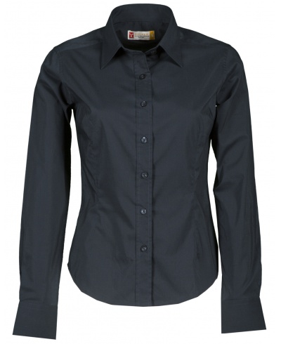 Damenbluse aus feinster gekämmter Baumwolle, körpernah geschnitten, mit Abnähern vorn und hinten, Kragen im italienischen Design, geformten Manschetten mit 2 Knöpfen und einem Knopfloch, sichtbarer Knopfleiste und Knöpfen Ton-in-Ton; Rückseite: glatte Rückenpartie. Pflegeleicht-Behandlung des Gewebes