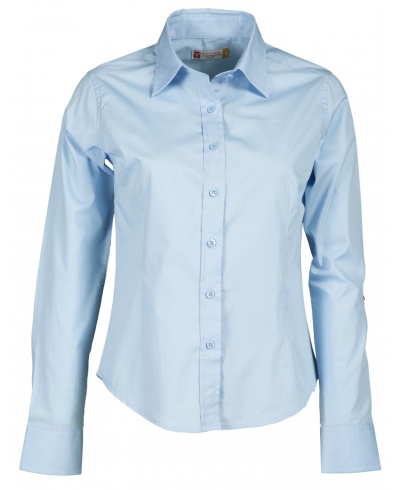 Damenbluse aus feinster gekämmter Baumwolle, körpernah geschnitten, mit Abnähern vorn und hinten, Kragen im italienischen Design, geformten Manschetten mit 2 Knöpfen und einem Knopfloch, sichtbarer Knopfleiste und Knöpf