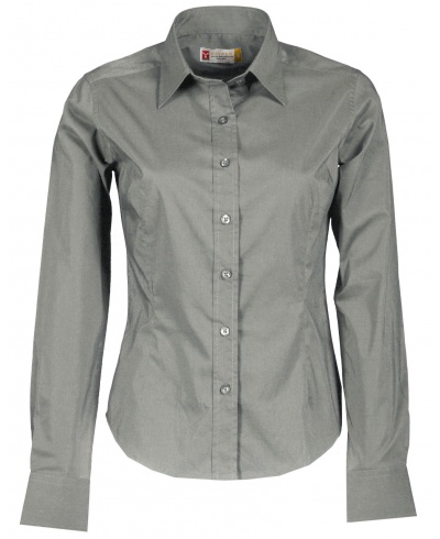 Damenbluse aus feinster gekämmter Baumwolle, körpernah geschnitten, mit Abnähern vorn und hinten, Kragen im italienischen Design, geformten Manschetten mit 2 Knöpfen und einem Knopfloch, sichtbarer Knopfleiste und Knöpf
