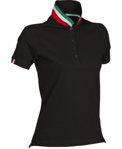 Tailliertes Damen-Polo-Shirt, kurzärmelig, mit 5 Knöpfen Ton-in-Ton und Perlmutteffekt, Oberseite des Kragens Ton-in-Ton, Unterseite mit den