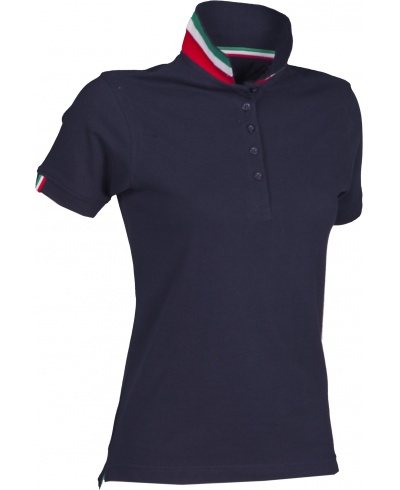 Tailliertes Damen-Polo-Shirt, kurzärmelig, mit 5 Knöpfen Ton-in-Ton und Perlmutteffekt, Oberseite des Kragens Ton-in-Ton, Unterseite mit den