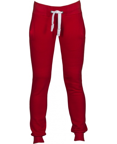 Damen-Sweathose mit elastischem Bund aus Rippstrick an der Taille und am Fußgelenk, weißem Kordelzug mit Nähten in Kontrastfarbe und Metallösen, zwei Vordertaschen mit Rippstricksaum und verstärkten Nähten