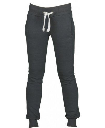 Damen-Sweathose mit elastischem Bund aus Rippstrick an der Taille und am Fußgelenk, weißem Kordelzug mit Nähten in Kontrastfarbe und Metallösen, zwei Vordertaschen mit Rippstricksaum und verstärkten Nähten