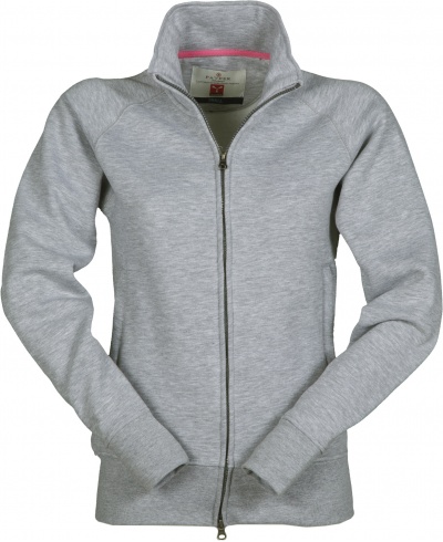Damen-Sweatjacke mit durchgehendem, verdecktem Zwei-Wege-Reißverschluss aus Kunststoff mit Metallschieber, Raglanärmeln, zwei Taschen mit verdeckten Reißverschlüssen, elastischem Feinripp an Ärmeln und Taille, verstärkten Nähten