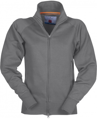 Damen-Sweatjacke mit durchgehendem, verdecktem Zwei-Wege-Reißverschluss aus Kunststoff mit Metallschieber, Raglanärmeln, zwei Taschen mit verdeckten Reißverschlüssen, elastischem Feinripp an Ärmeln und Taille, verstärkten Nähten