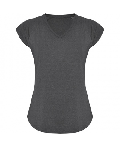 Enganliegendes Damen Sport-Shirt. Raglan-Ärmel. V-Ausschnitt. Polyester mit Baumwollfeeling.