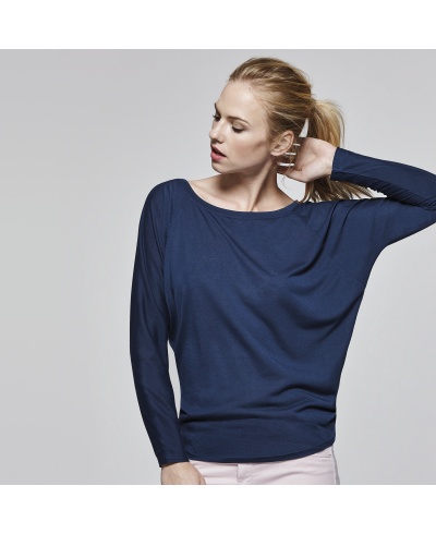Damen T-Shirt mit weitem Halsausschnitt. Raglanärmel im Fledermausstil.