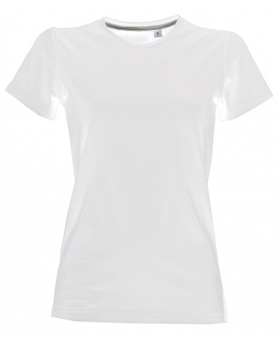 Tailliertes Damen-T-Shirt mit Rundhalsausschnitt, kurzärmelig, Feinripp-Kragen 1,5 cm aus Spandex-Mischgewebe mit Kappnaht an der Vorderseite, Verstärkungsband in Kontrastfarbe