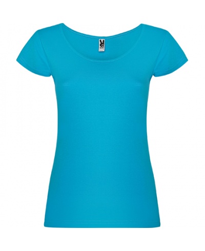 Kurzärmeliges T-shirt mit tiefem Rundhalsausschnitt. Seitennähte. Tailliertes Schnitt.