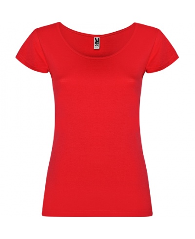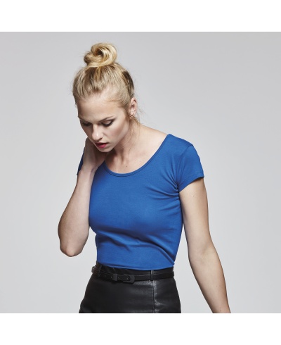 Kurzärmeliges T-shirt mit tiefem Rundhalsausschnitt. Seitennähte. Tailliertes Schnitt.