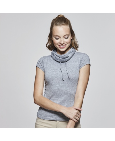 T-Shirt mit kurzen Ärmeln. Figurbetont. Bequemer Rollkragen mit Kordelzug. Seitennähte.