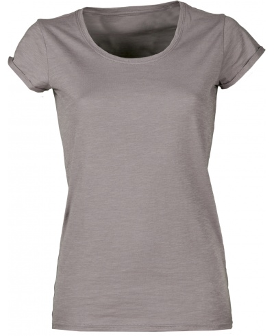 Tailliertes Damen-T-Shirt, kurzärmelig, mit tiefem Rundhalsausschnitt, schmalem 1 cm Halsabschluss