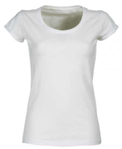 Tailliertes Damen-T-Shirt, kurzärmelig, mit tiefem Rundhalsausschnitt, schmalem 1 cm Halsabschluss