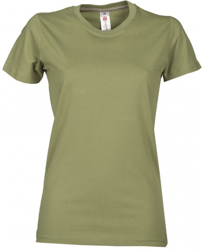 Tailliertes Damen-T-Shirt mit Rundhalsausschnitt, kurzärmelig, Feinripp-Kragen 1,5 cm aus Spandex-Mischgewebe mit Kappnaht an der Vorderseite, Verstärkungsband in Kontrastfarbe von Schulter