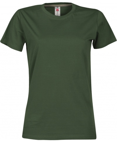 Tailliertes Damen-T-Shirt mit Rundhalsausschnitt, kurzärmelig, Feinripp-Kragen 1,5 cm aus Spandex-Mischgewebe mit Kappnaht an der Vorderseite, Verstärkungsband in Kontrastfarbe von Schulter