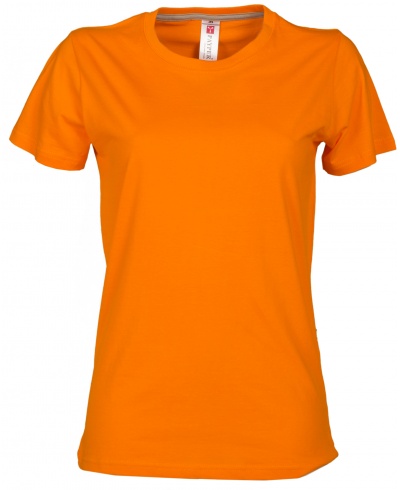 Tailliertes Damen-T-Shirt mit Rundhalsausschnitt, kurzärmelig, Feinripp-Kragen 1,5 cm aus Spandex-Mischgewebe mit Kappnaht an der Vorderseite, Verstärkungsband in Kontrastfarbe von Schulter