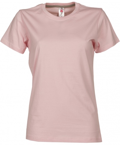 Tailliertes Damen-T-Shirt mit Rundhalsausschnitt, kurzärmelig, Feinripp-Kragen 1,5 cm aus Spandex-Mischgewebe mit Kappnaht an der Vorderseite, Verstärkungsband in Kontrastfarbe von Schulter