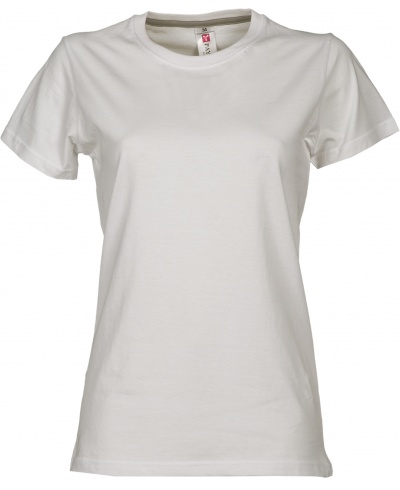 Tailliertes Damen-T-Shirt mit Rundhalsausschnitt, kurzärmelig, Feinripp-Kragen 1,5 cm aus Spandex-Mischgewebe mit Kappnaht an der Vorderseite, Verstärkungsband in Kontrastfarbe von Schulter