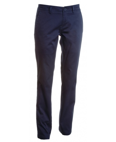 Klassische Damenhose mit französischen Taschen, einer kleinen Reißverschlusstasche, zwei Einschubtaschen hinten mit Knopf, Reißverschluss mit Knopf, Gürtelschlaufen an der Taille und Aufnäher aus echtem Leder, aus gekämmter zweilagiger Baumwolle mit hoher Dichte, Enzymwaschung