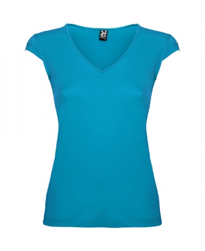 Tailliertes DamenT-Shirt mit tiefem, eingefassten V-Ausschnitt in feinem Rippstrick. Flügelärmel. Seitennähte.