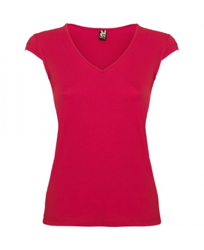Tailliertes DamenT-Shirt mit tiefem, eingefassten V-Ausschnitt in feinem Rippstrick. Flügelärmel. Seitennähte.