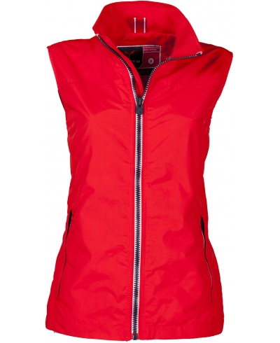 Damenweste mit elastischem Bund, Reißverschluss in Kontrastfarbe, 2 Außentaschen mit verdecktem Reißverschluss; Innenseite nicht wattiert, Netzfutter, 1 Innentasche mit Reißverschluss und Öffnung für Smartphone-Kopfhörer, Reißverschluss am Bund zum einfacheren Veredeln mit Druck und Stick