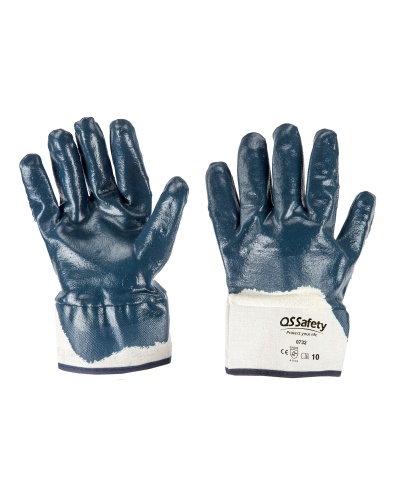 NBR-Handschuhe, belüfteter Rücken, lange Stulpe, Baumwoll-Jersey-beschichtet; Eigenschaften: robust, sehr widerstandsfähig; Stärken: Passform, Griffigkeit, Schutz, beständig gegen Flüssigkeiten, praktisch; Einsatzbereiche: starke Beanspruchung, Metalle, scharfe und abrasive Materialien, Öl, Fett, Schmutz, Kohlenwasserstoffe, Schmiermittel