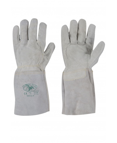 Rindspaltlederhandschuhe - 14 cm Spaltledermanschette; Eigenschaften: robust, sehr widerstandsfähig; Stärken: Griffigkeit, Schutz; Anwendungsbereiche: schwere Handhabung, geeignet für den Kontakt mit heißem, entgratetem Material