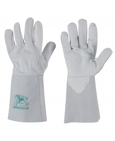 Rindslederhandschuhe mit Spaltlederrücken - verstärkt - Flügeldaumen - 14 cm Spaltledermanschette; Eigenschaften: weich, stark, widerstandsfähig; Stärken: Komfort, einfach zu bedienen; Anwendungsgebiete: allgemeine Handhabung bei trockenen Bedingungen
