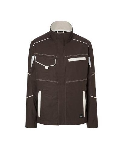 Elastische, leichte Canvas-Qualität, Perfekte, bequeme Passform durch Elasthananteil und ergonomische Schnittführung, Stehkragen innen mit weichem Fleece, Ergonomisch geformte Ärmel, Durchgehend unterlegter Reißverschluss mit Windschutzblende und Kinnschutz, Innenliegende Armbündchen, Seitentaschen, Brusttasche und Innentasche mit Reißverschluss, Brusttasche mit Klappe und Klettverschluss, Handytasche innen, Reflexelemente am Ärmel und im Rückenteil, 60° waschbar, trocknergeeignet, Knöpfe und Reißverschlüsse: Um Beschädigungen am zu bearbeitenden Produkt zu vermeiden, sind alle Knöpfe und Reißverschlüsse verdeckt verarbeitet.