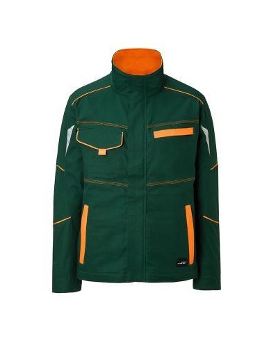 Elastische, leichte Canvas-Qualität, Perfekte, bequeme Passform durch Elasthananteil und ergonomische Schnittführung, Stehkragen innen mit weichem Fleece, Ergonomisch geformte Ärmel, Durchgehend unterlegter Reißverschluss mit Windschutzblende und Kinnschutz, Innenliegende Armbündchen, Seitentaschen, Brusttasche und Innentasche mit Reißverschluss, Brusttasche mit Klappe und Klettverschluss, Handytasche innen, Reflexelemente am Ärmel und im Rückenteil, 60° waschbar, trocknergeeignet, Knöpfe und Reißverschlüsse: Um Beschädigungen am zu bearbeitenden Produkt zu vermeiden, sind alle Knöpfe und Reißverschlüsse verdeckt verarbeitet.